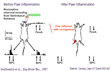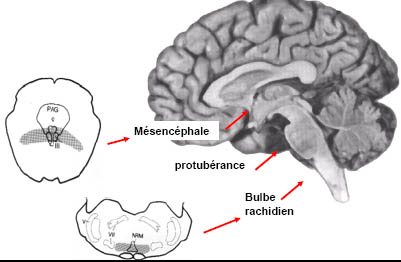 • La stimulation dans la SGPA et le NRM produit une inhibition de la douleur